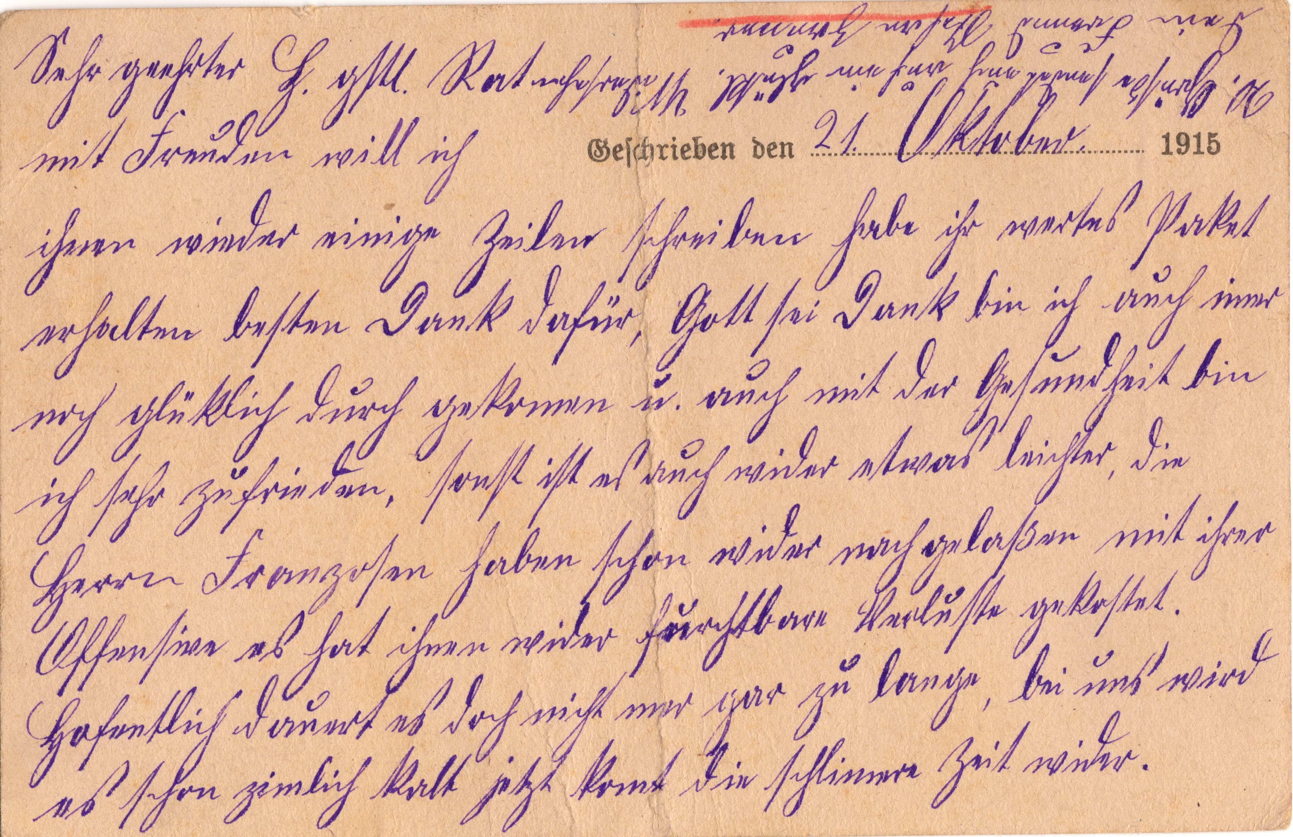 noch glücklich durchgekommen u. auch mit der Gesundheit bin
