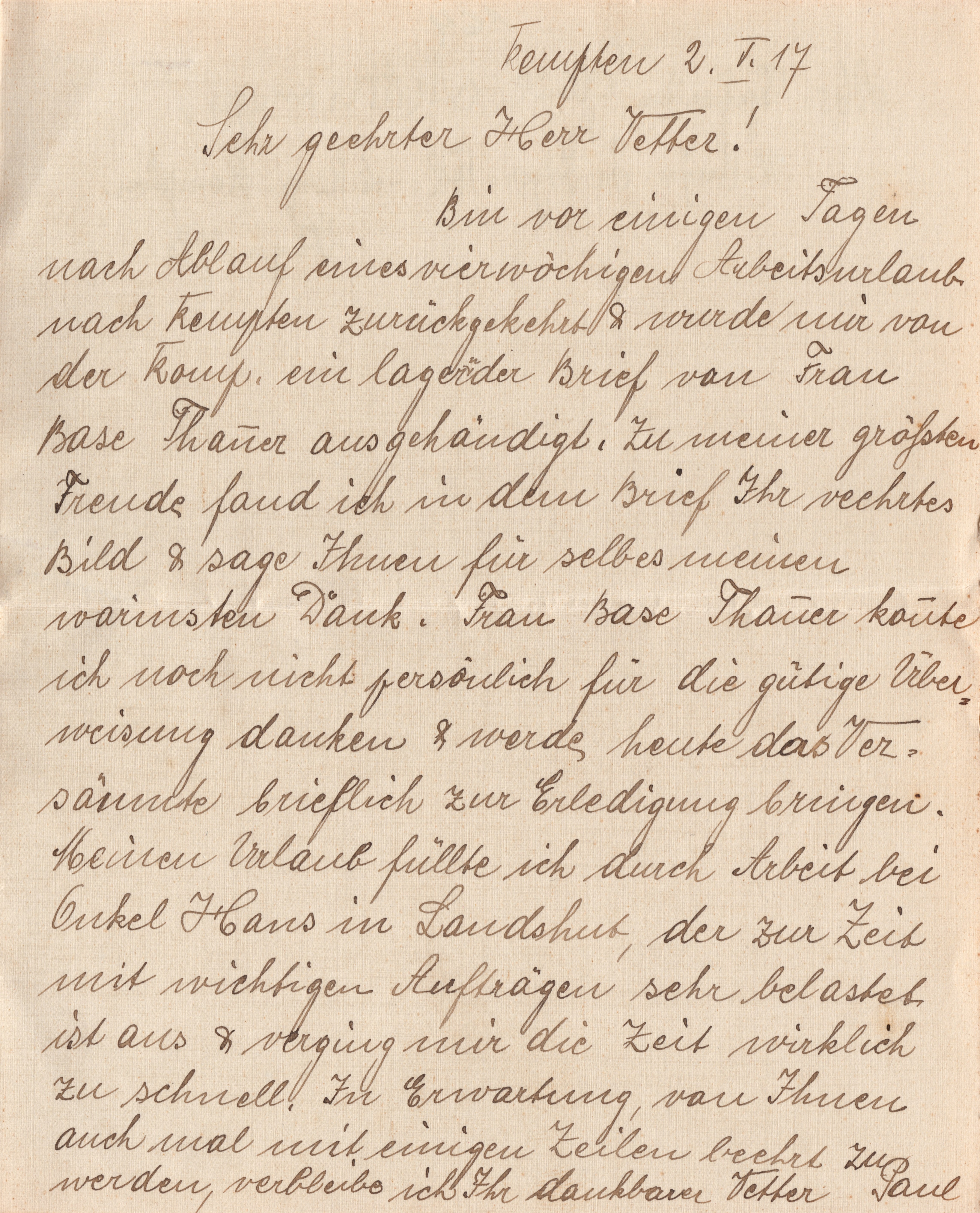 werden, verbleibe ich Ihr dankbarer Vetter Paul