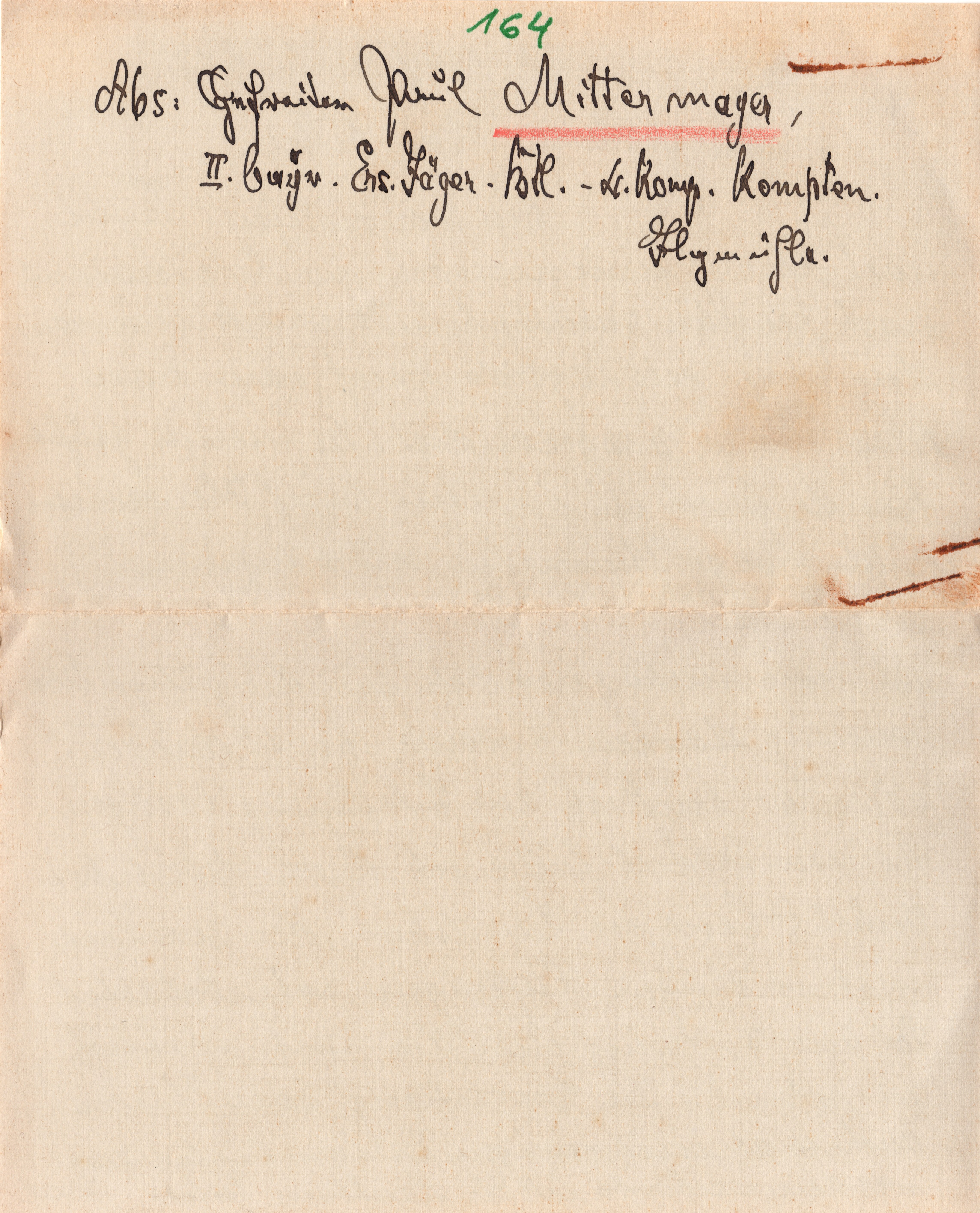 der Komp. ein lagernder Brief von Frau