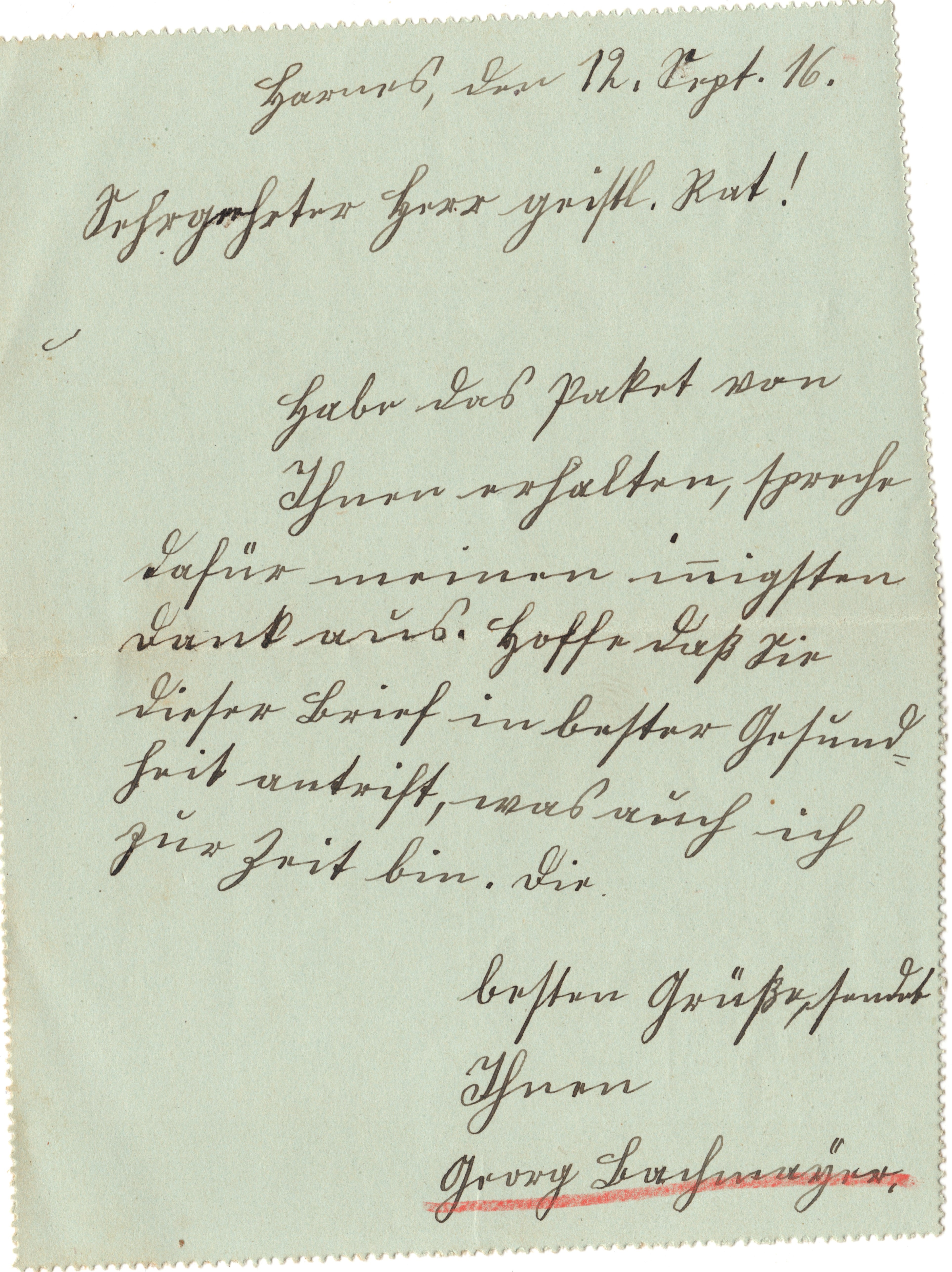 Sehr geehrter Herr geistl. Rat!