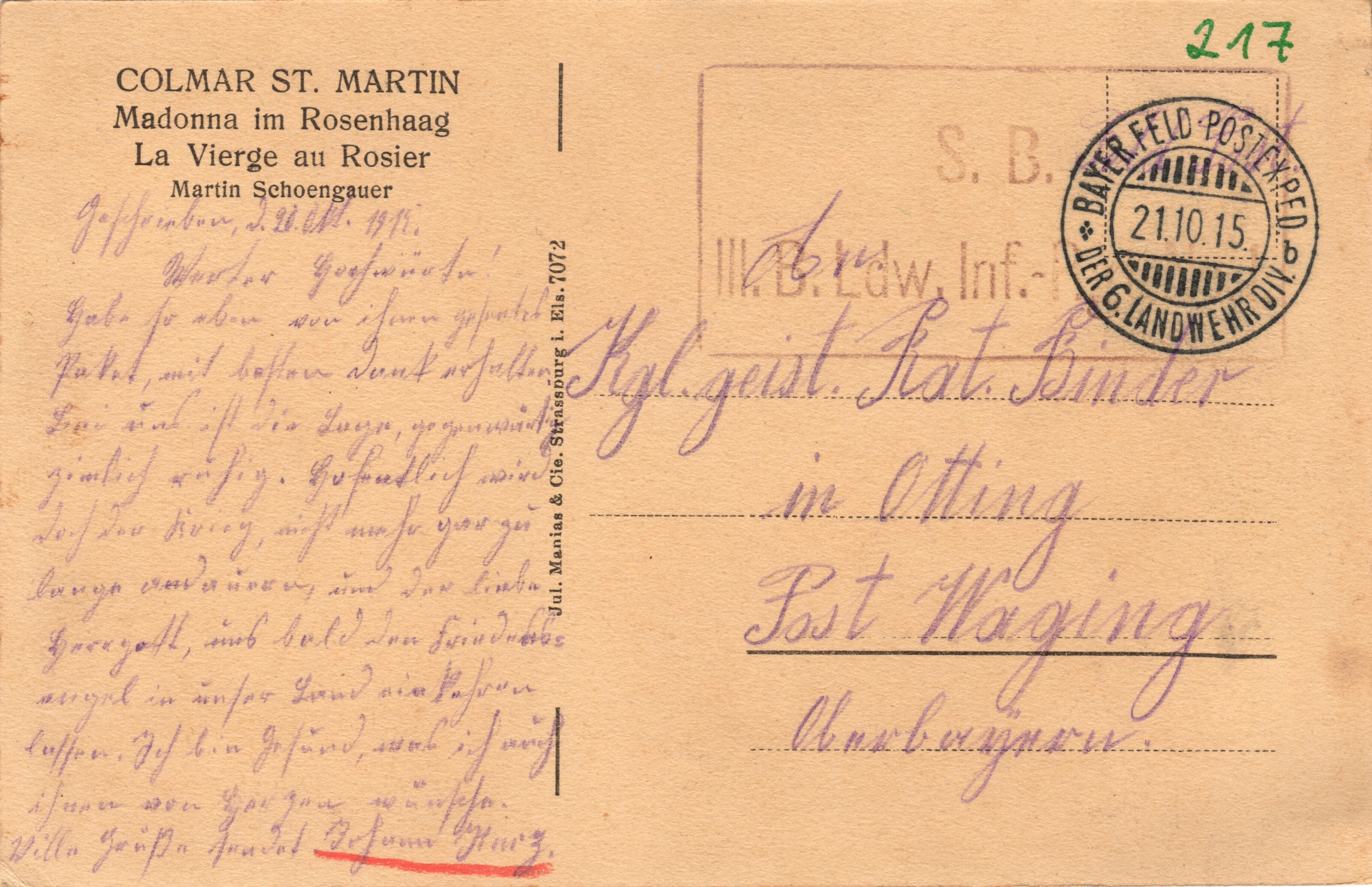 Geschrieben den 20. Okt. 1915