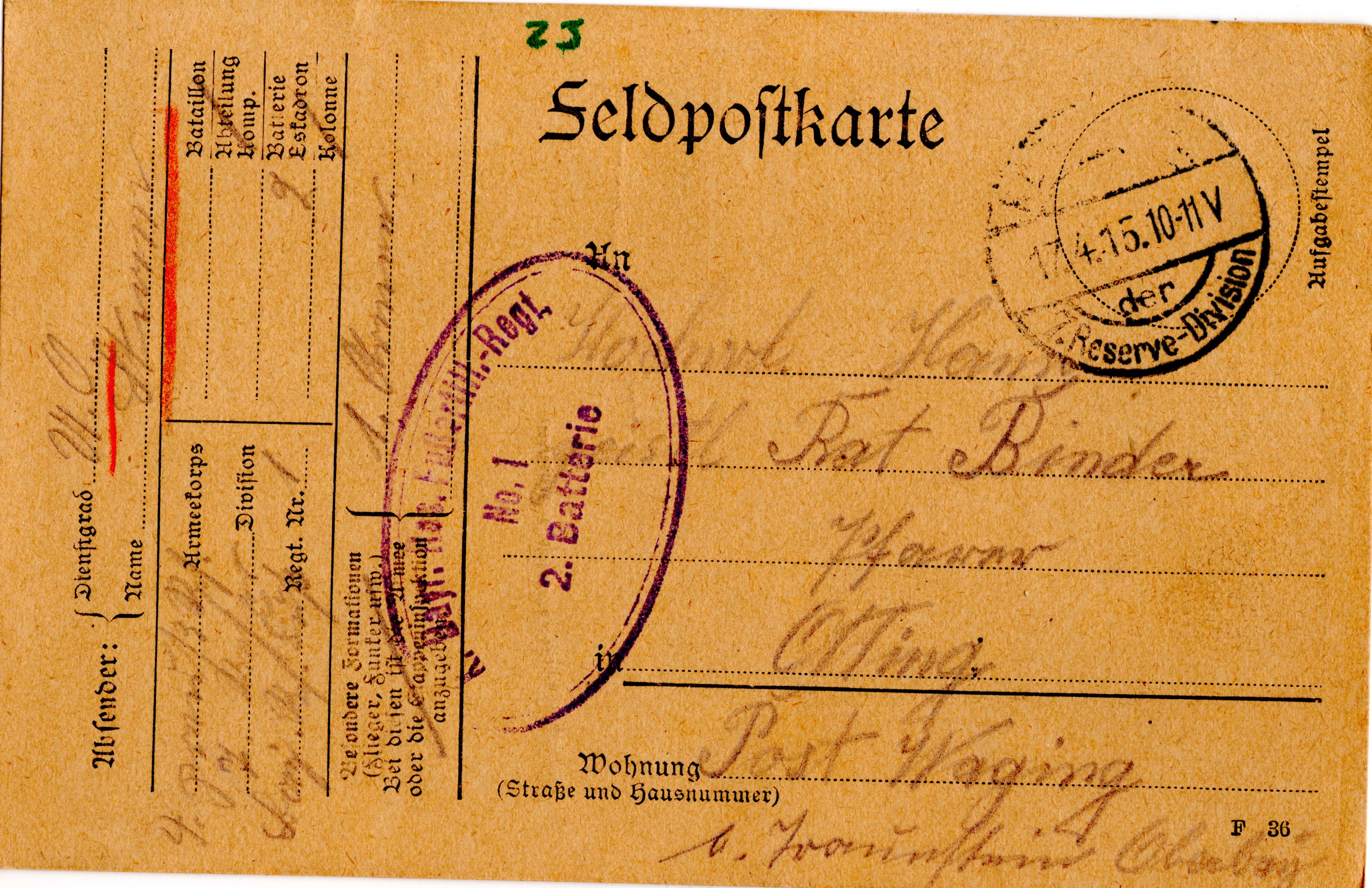 jetzt beim 4. Preuß. Res.