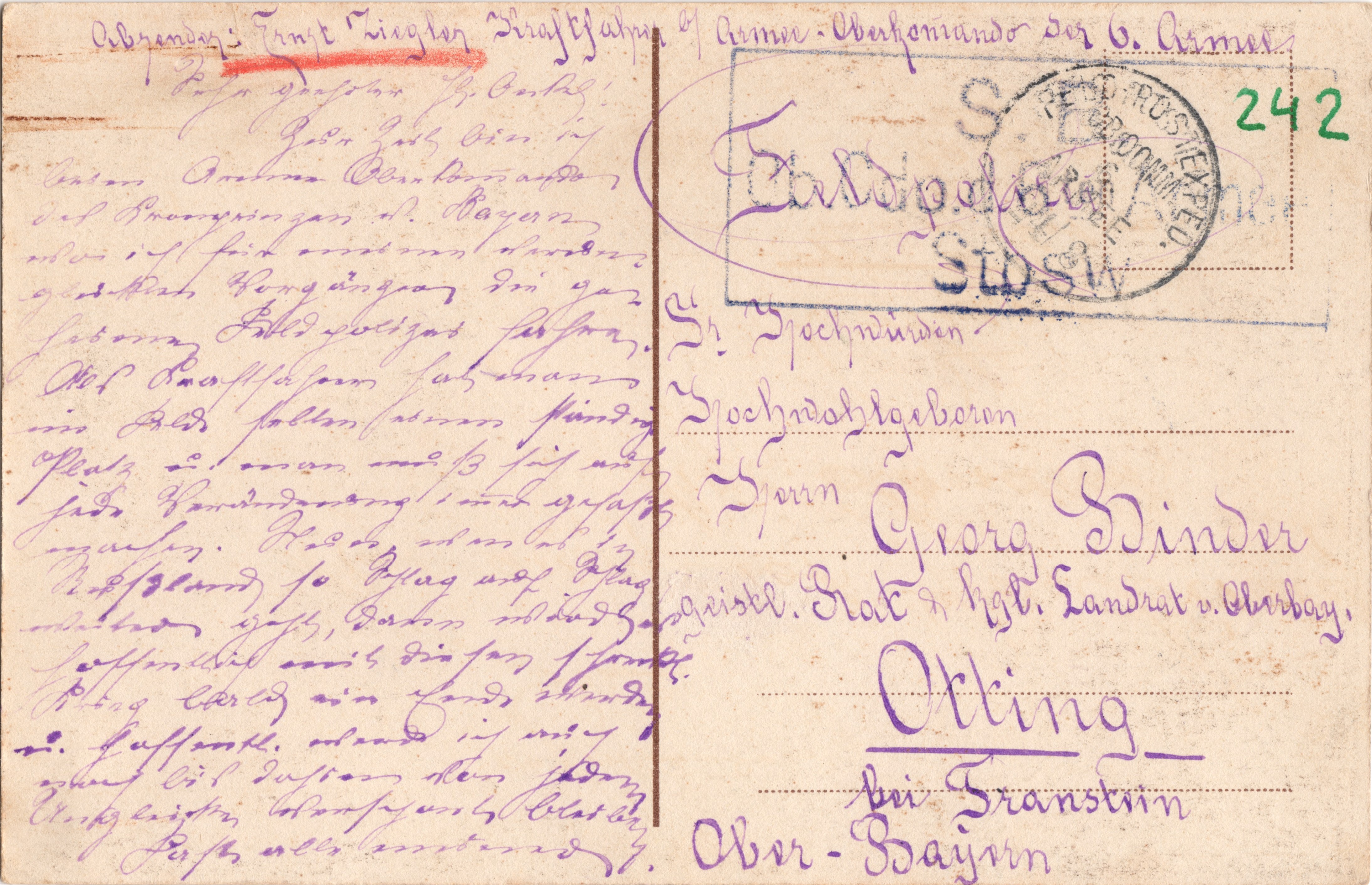Absender: Ernst Ziegler Kraftfahrer b. Armee Oberkommando der 6. Armee