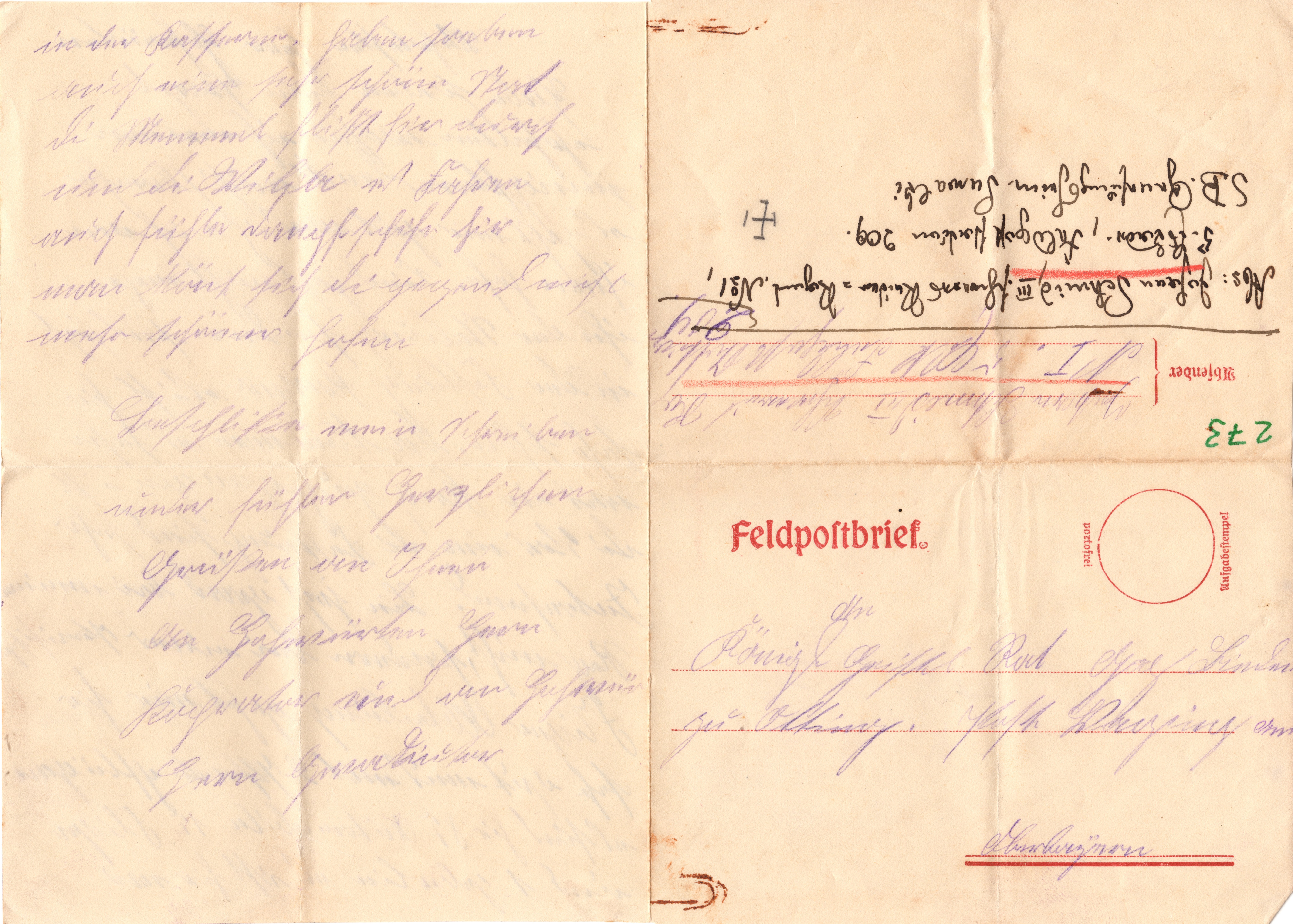 Abs: Johann Schmid, III. Schwere Reiter Rgmt. No 1,