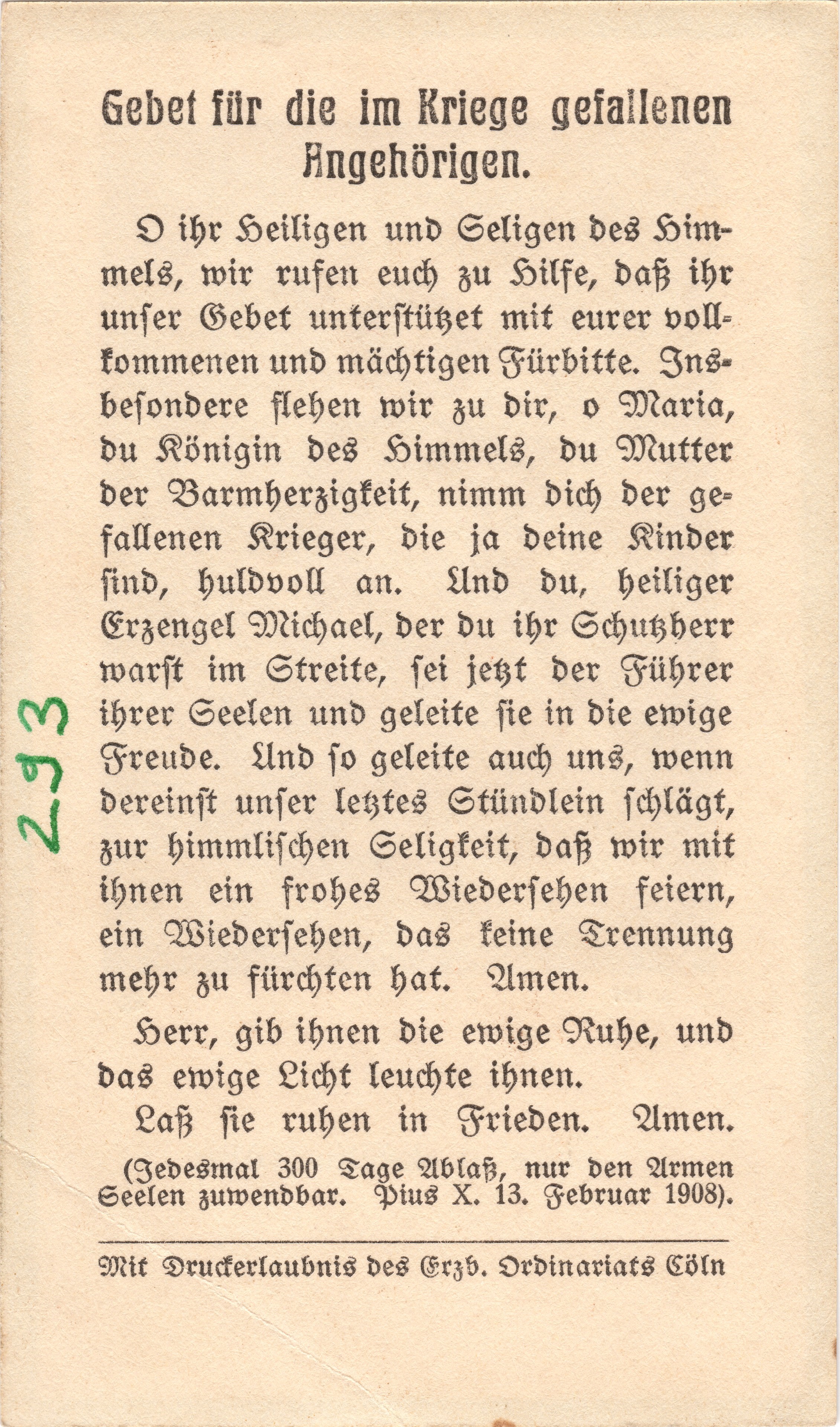 (Jedesmal 300 Tage Ablaß, nur den Armen