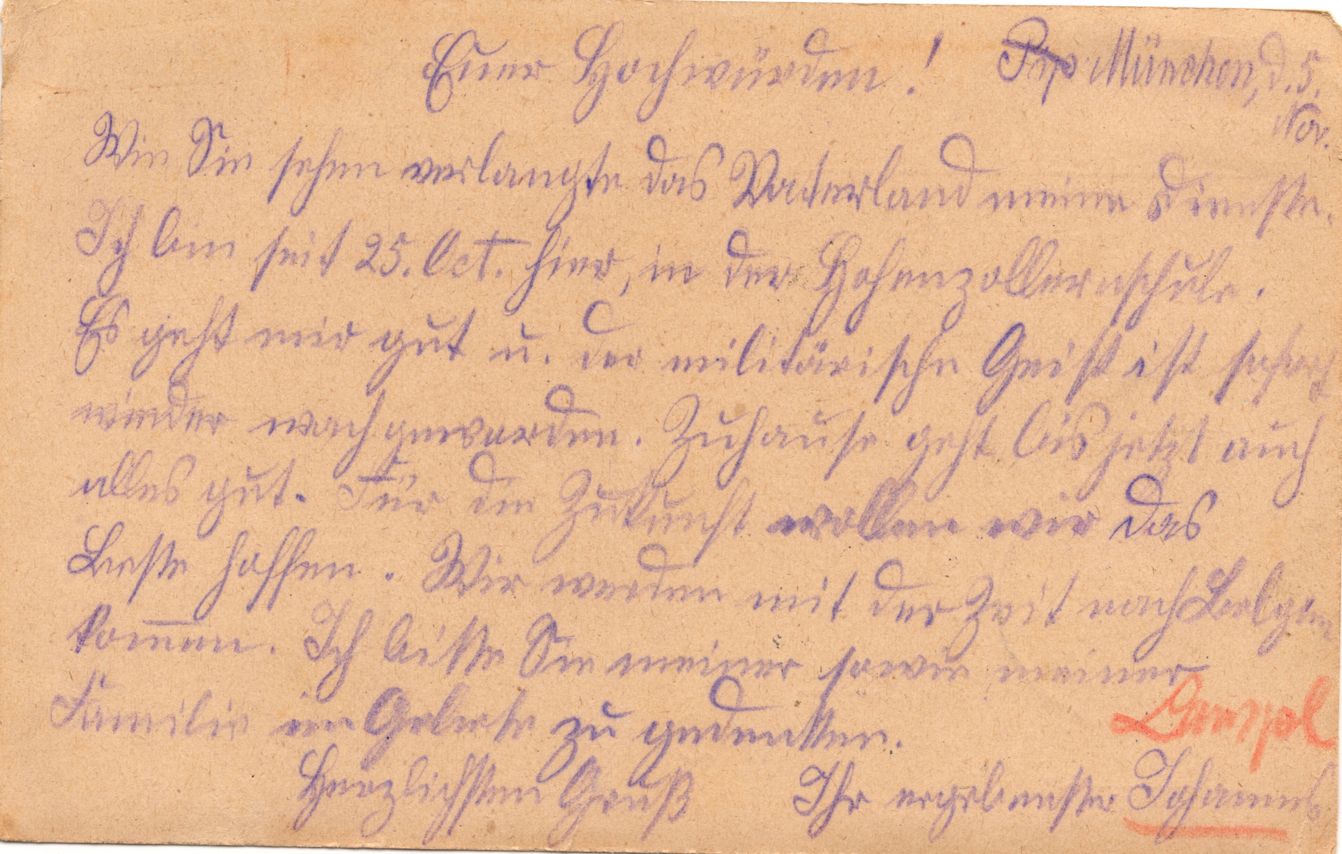 Ich bin seit 25. Oct. hier, in der Hohenzollernschule.