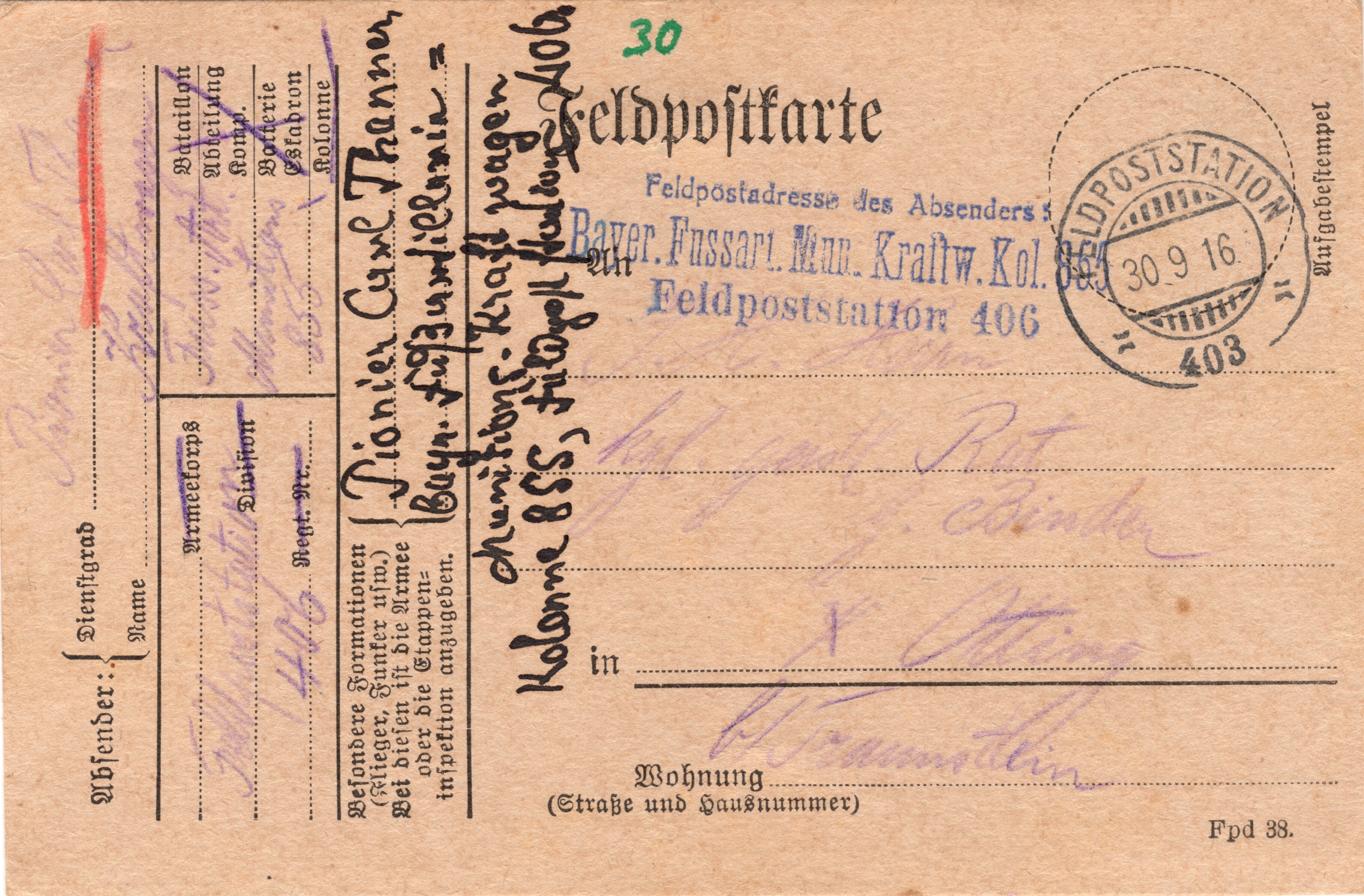Geschrieben den 29.9.1916