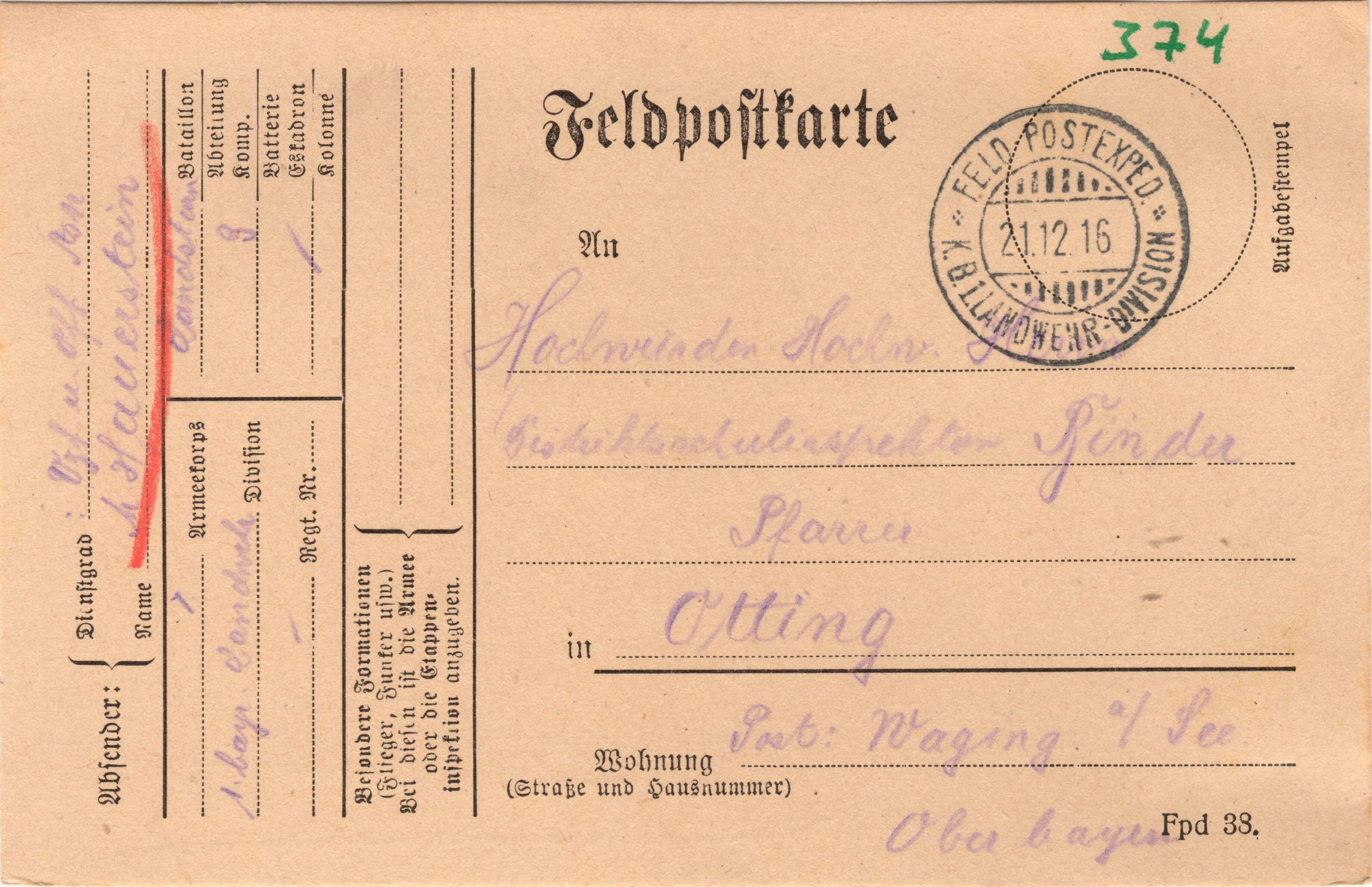 Geschrieben den 20. Dezember 1916