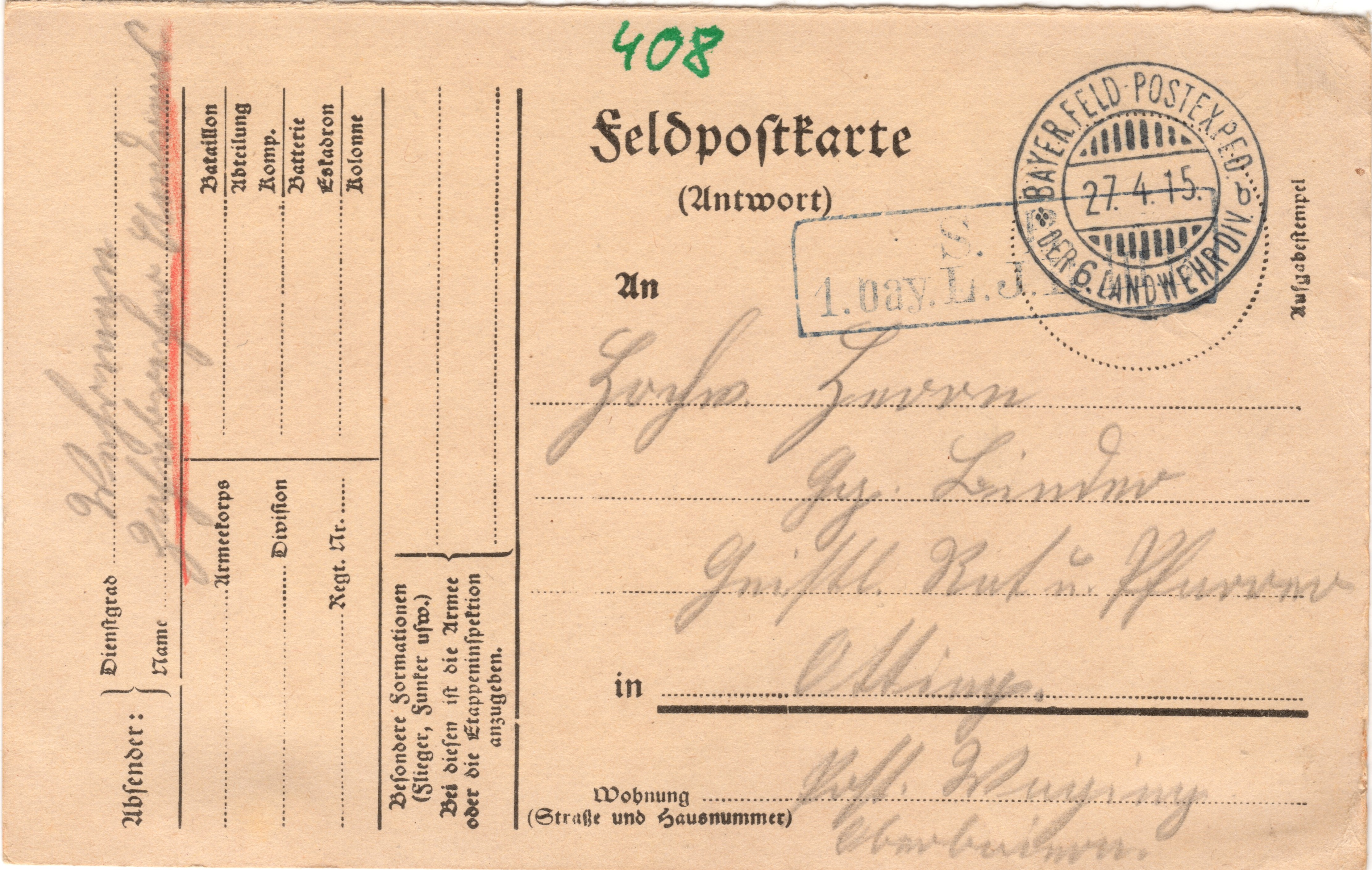 Geschrieben den 24.4.1915