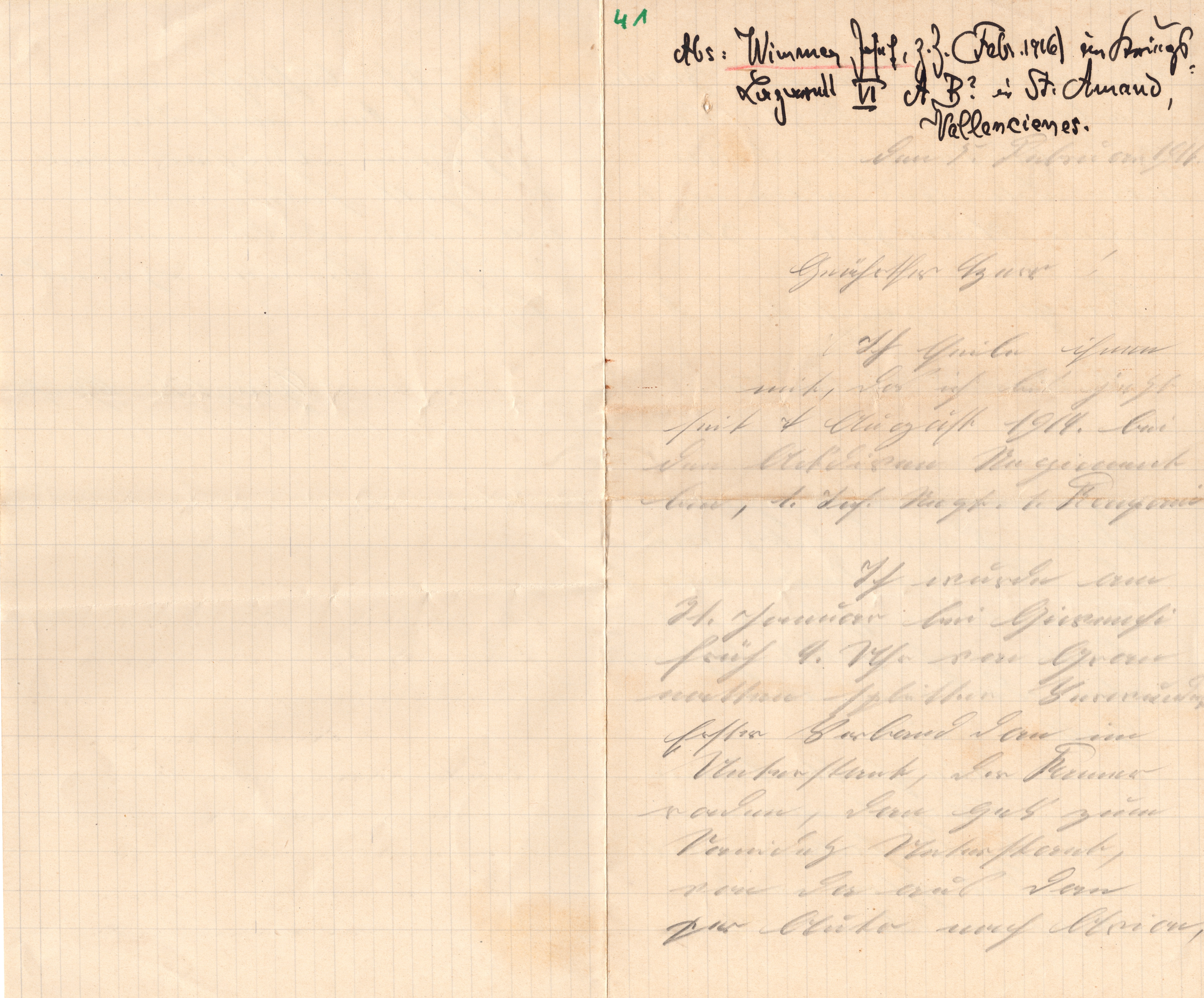 Abs: Wimmer Josef, z.Z. (Feb. 1916) im Kriegs-