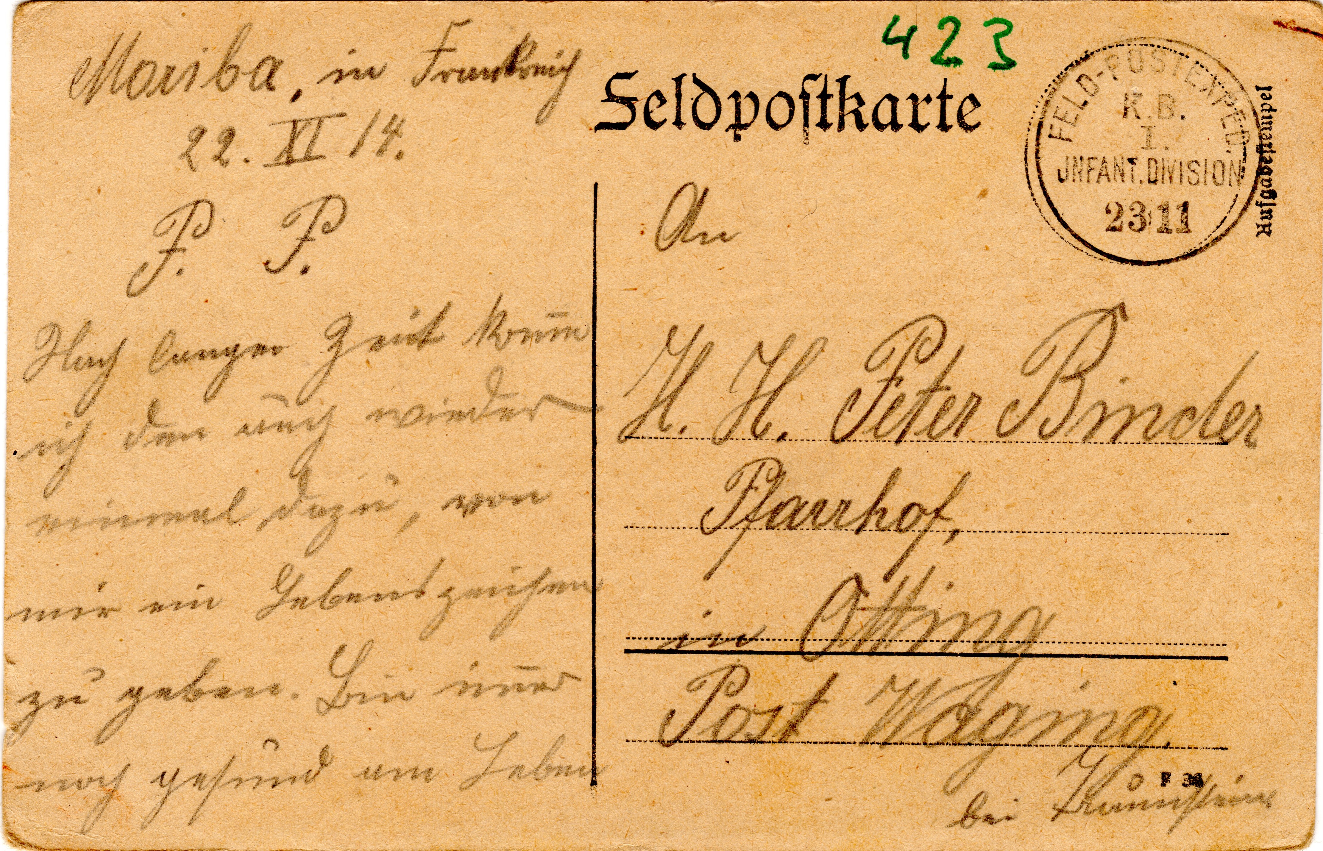 Viele Grüße sendet er. Jos. Hiebl