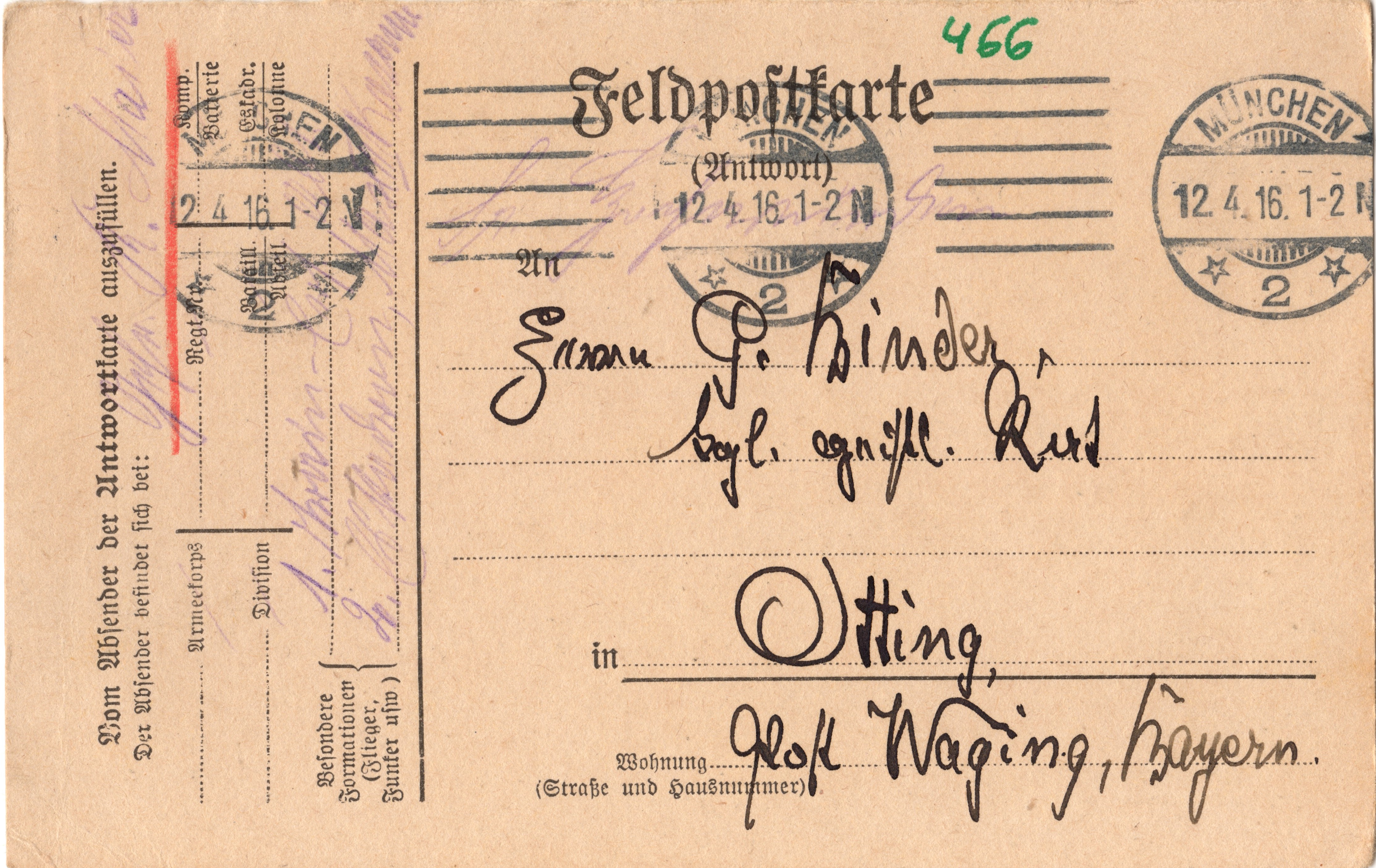 grüßt herzlichst Einj[ährig]. Gefr. Kaspar Maier
