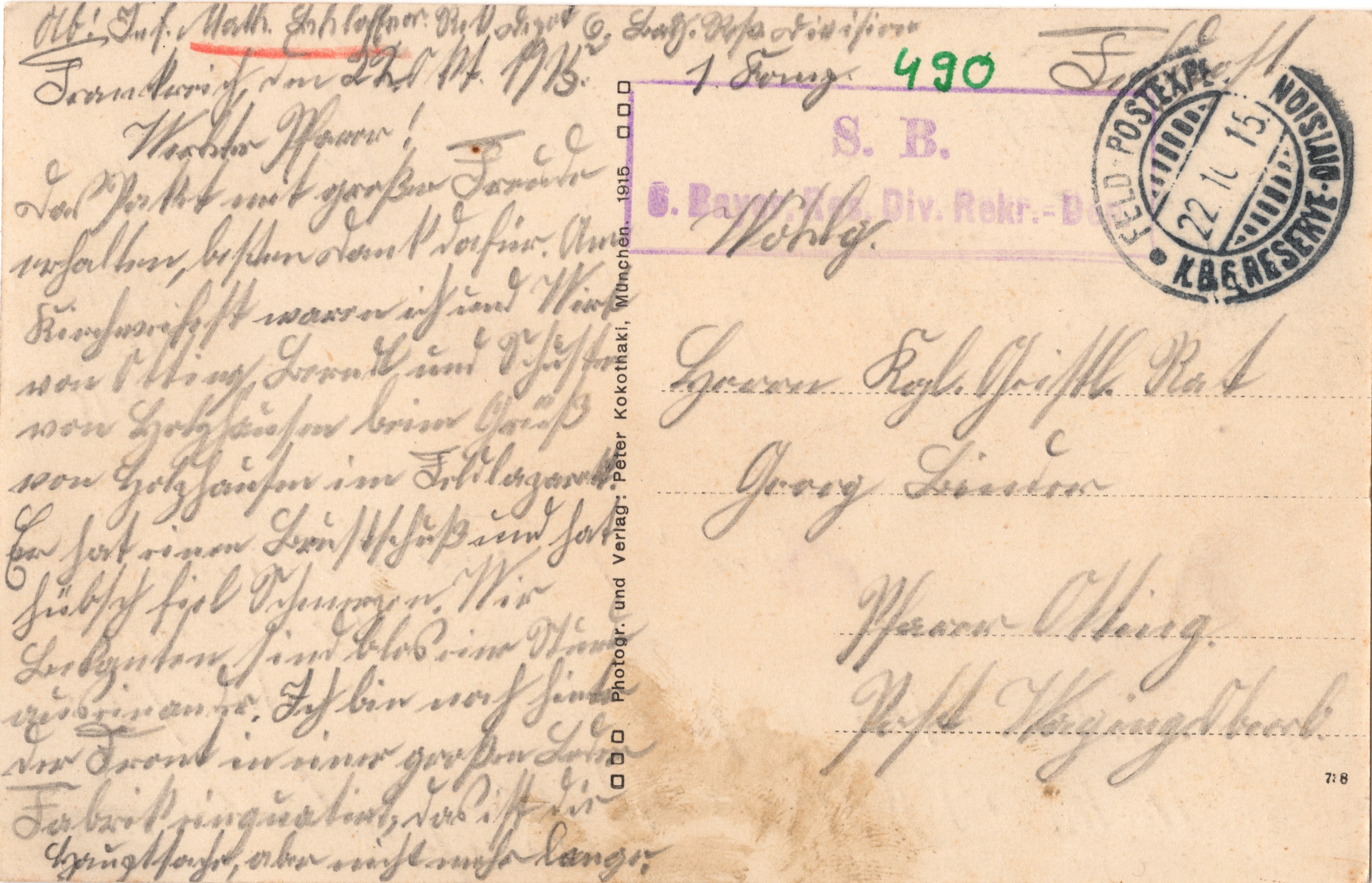 Gruß an auch alle im Hause von euren alten Dienstknecht Mathias Schlaffner ]