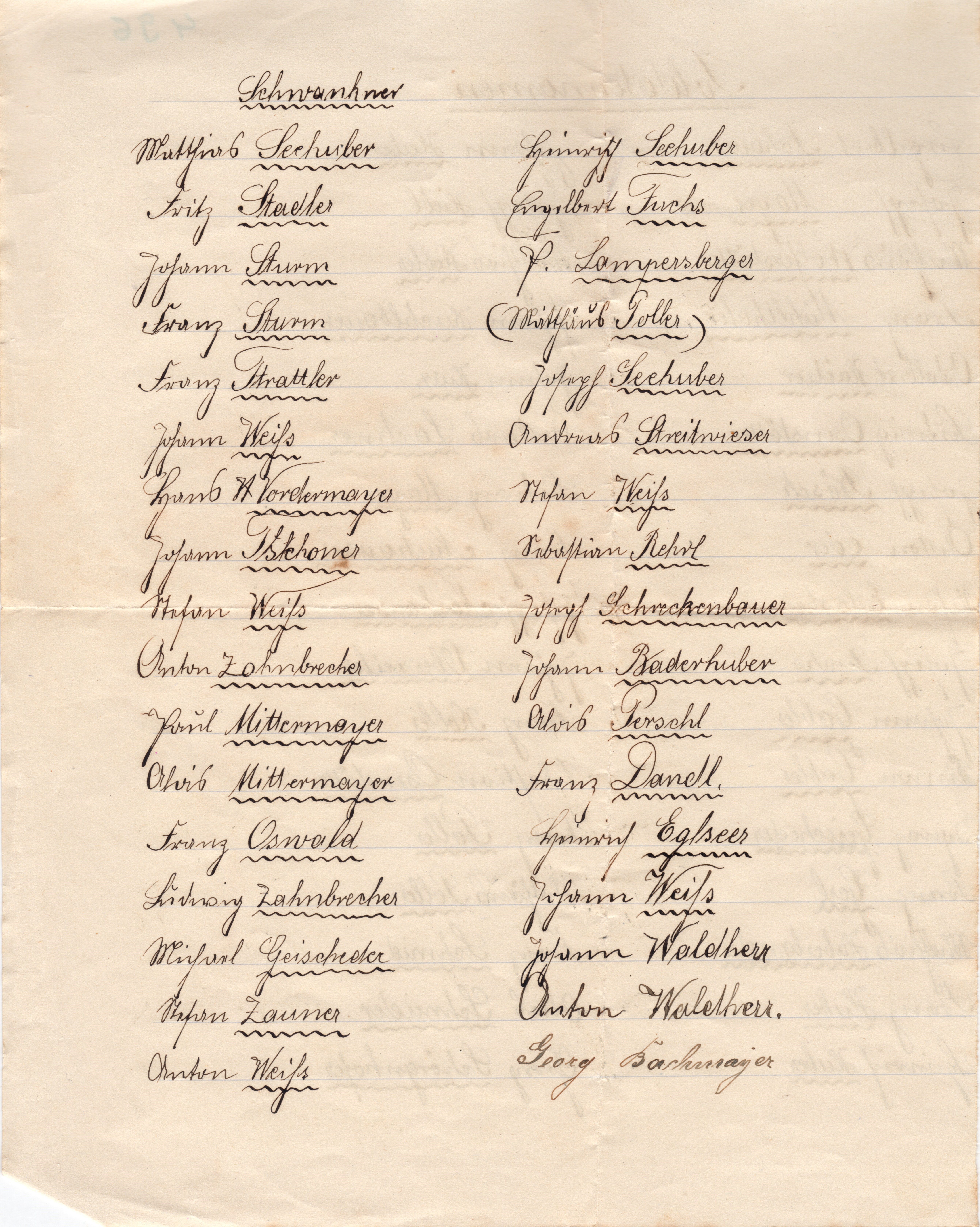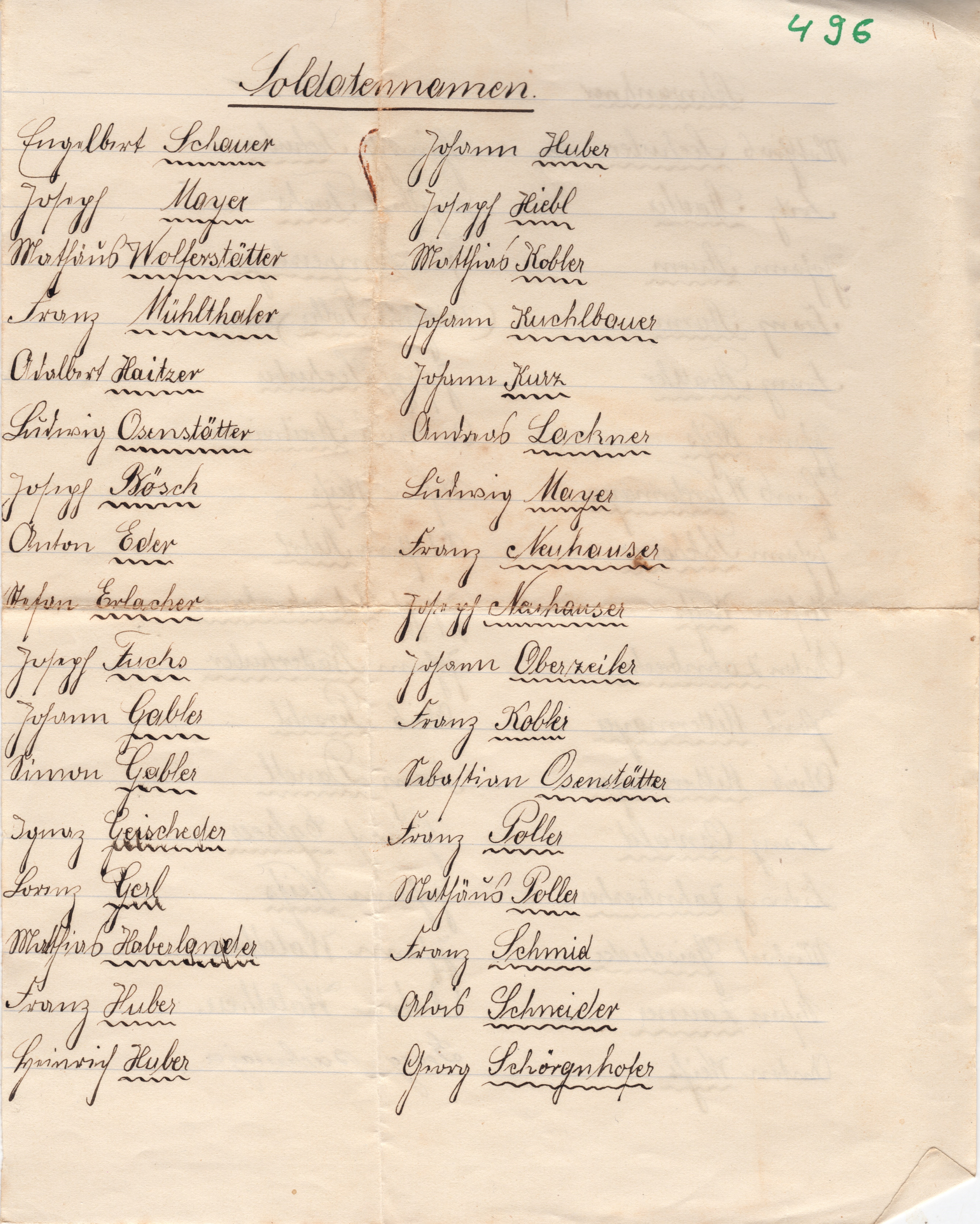 Die Liste wurde der Einfachheit halber vorerst Pfarrer Binder zugeordnet, sie entspricht aber nicht seinem Schriftbild.