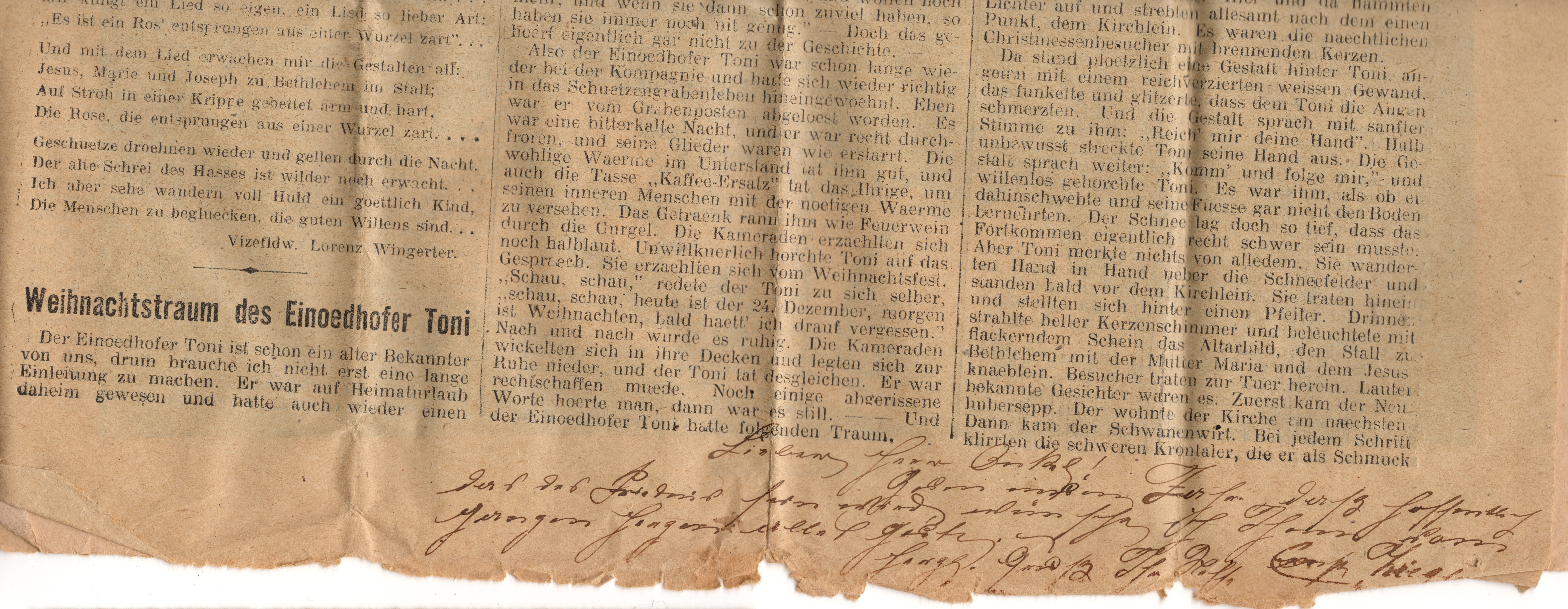 Lieber Herr Onkel. Gutes neues Jahr daß hoffentlich das des Friedens sein wird wünsche ich Ihnen vom ganzen Herzen alles Gute, herzl. Gruß Ihr Neffe Ernst Ziegler