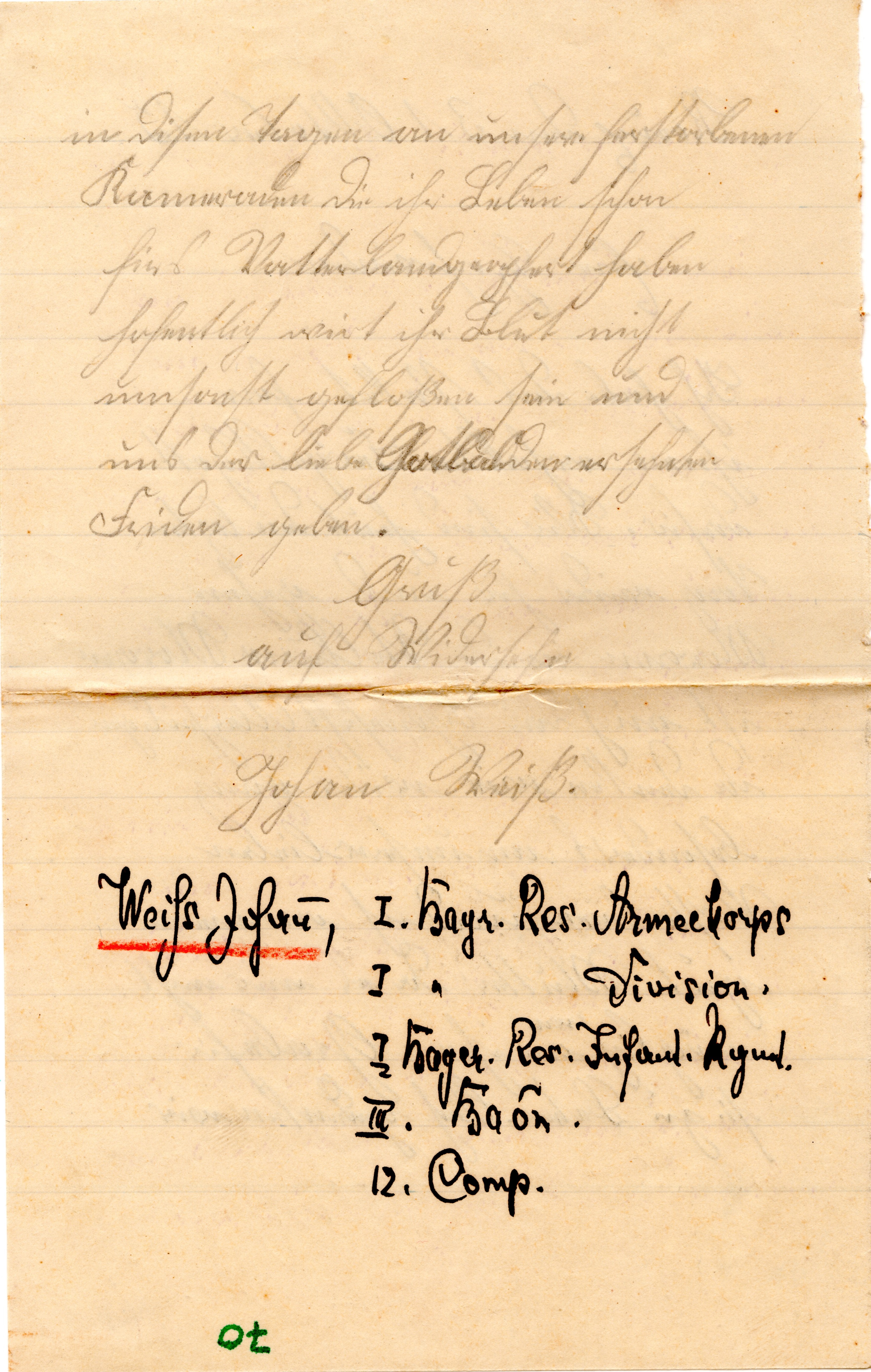 Weiß Johann, 1. Bayr. Res. Armeekorps