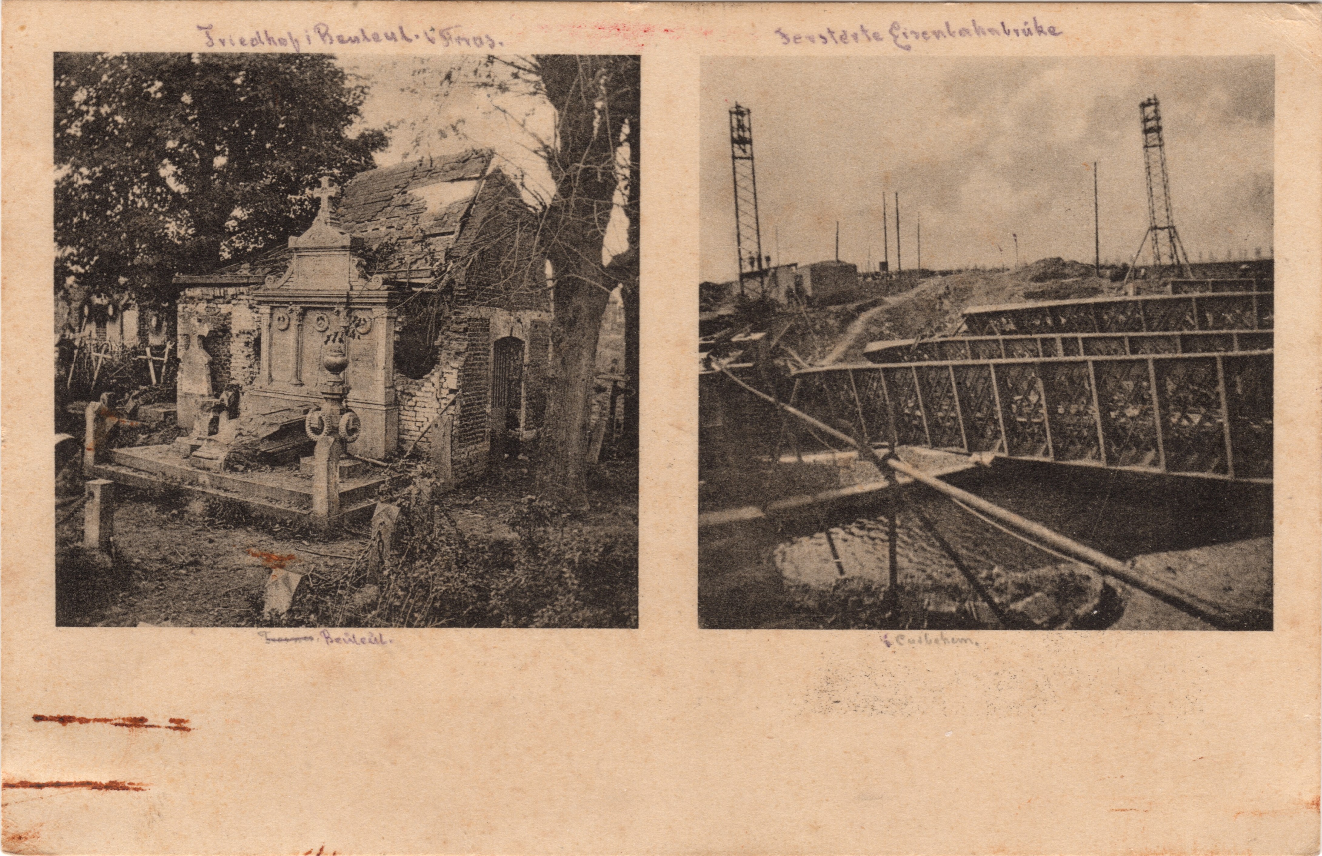 Friedhof i. Bailleul-Sir-Berthoult b. Arras Zerstörte Eisenbahnbrücke]