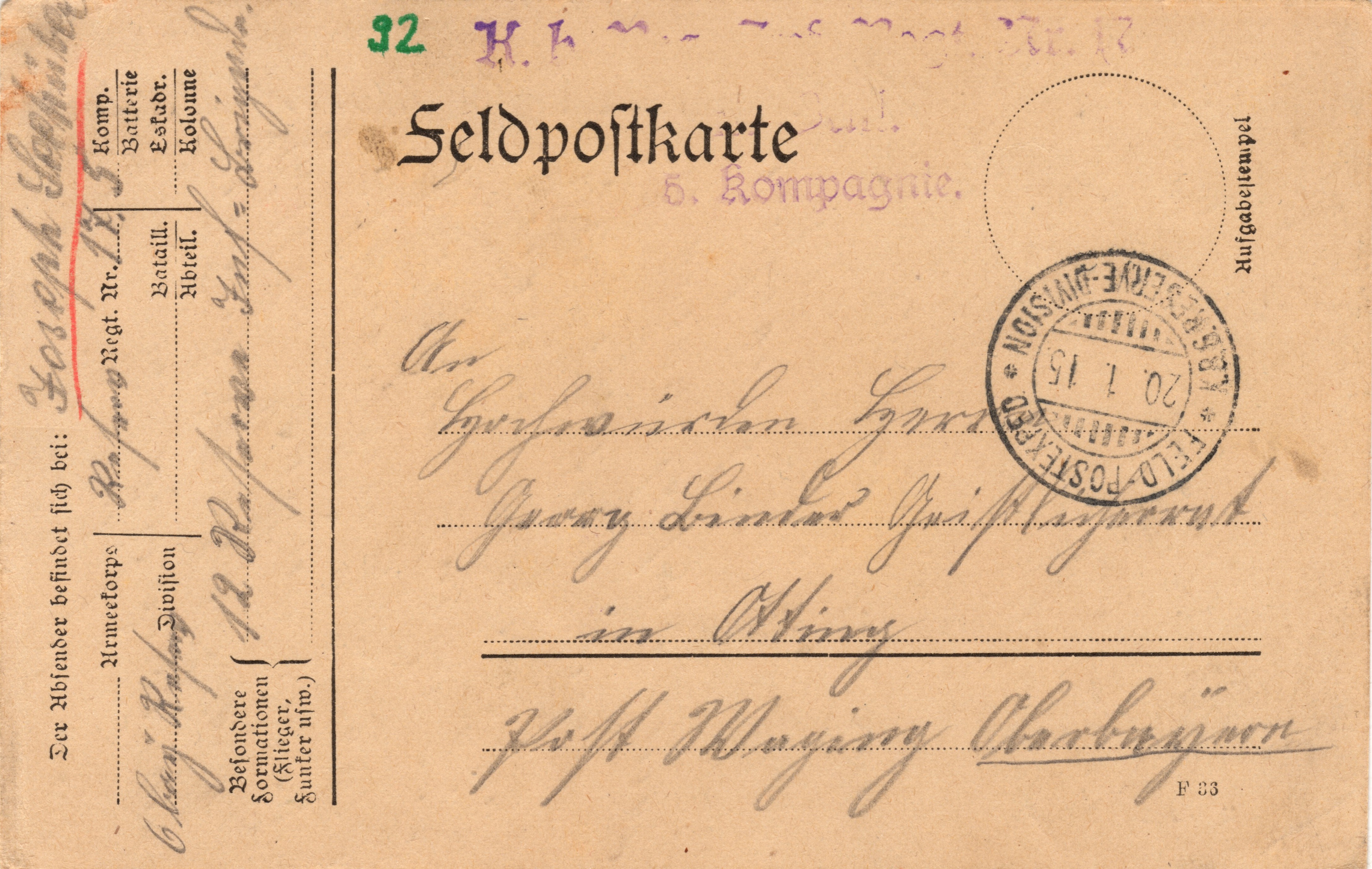 Messina, geschrieben den 19. Jänner 1915