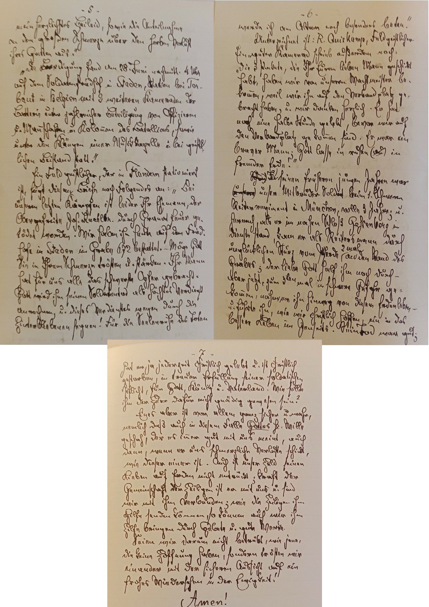 Unterzeichnet ist: R. Quiskamp, Feldgeistlicher.